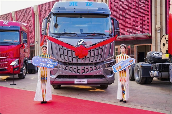 从产品核心优势来看,两款燃气重卡精准直击干线运输痛点。乘龙HK燃气牵引车以“舒适、智能、节能、高效”四大核心价值为干线运输树立标杆,采用16L 640大马力发动机,最大扭矩达2800N・m,匹配法士特12档变速箱,面对长测中的各种复杂路况仍能动力充沛。车辆所搭载的“龙犀节能系统”实现百公里气耗比同级低2kg,搭配优化驾乘空间与多元增值服务,兼顾运输效率与运营收益。